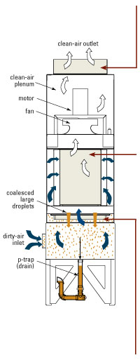 | 水溶性油霧顆粒尺寸: 2-20 微米 | 煙霧顆粒尺寸:0.07-1.2 微米 | 切削油顆粒尺寸: 0.8-5 微米 |